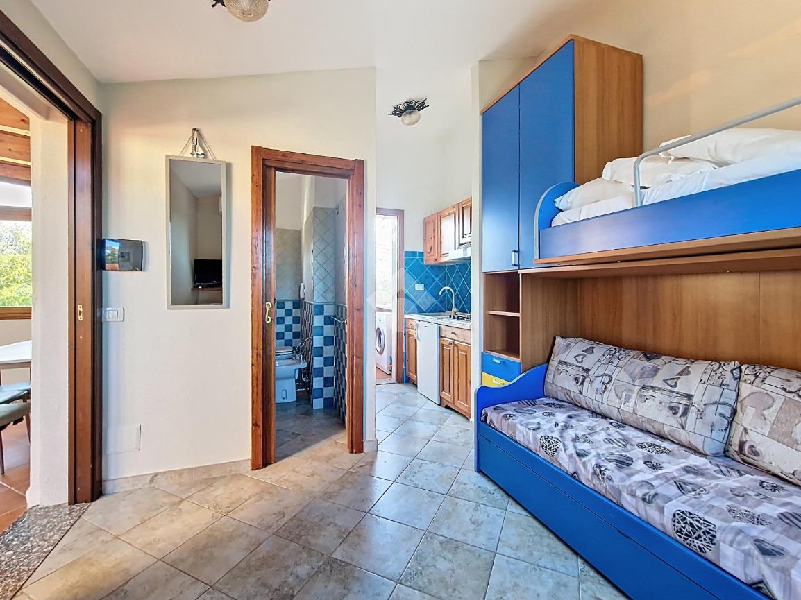 Completano la soluzione la camera da letto in cui attualmente è presente un letto a castello e il bagno finestrato.