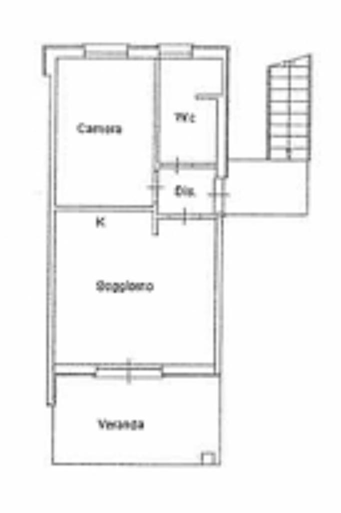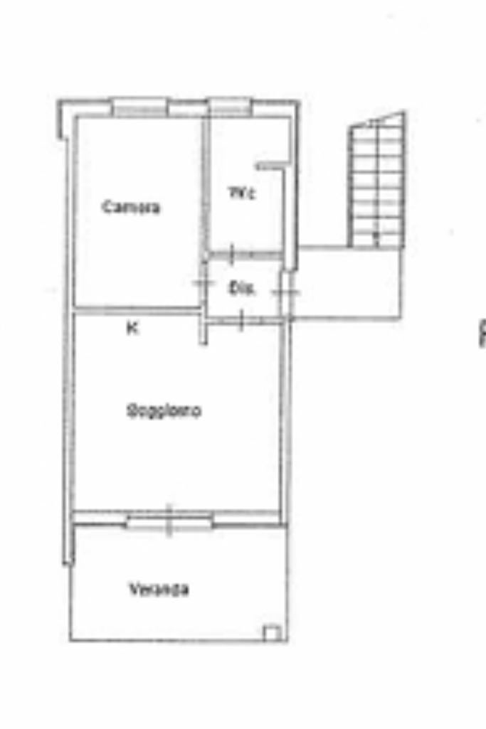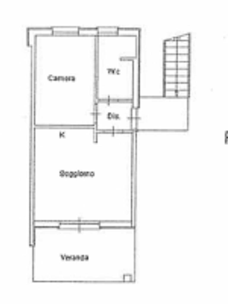 Accediamo all'appartamento mediante scala esterna, all'ingresso troviamo la zona giorno con angolo cottura, rende tutto più luminoso il terrazzo esposto al sole tutto il giorno.