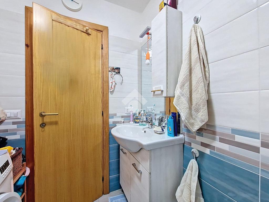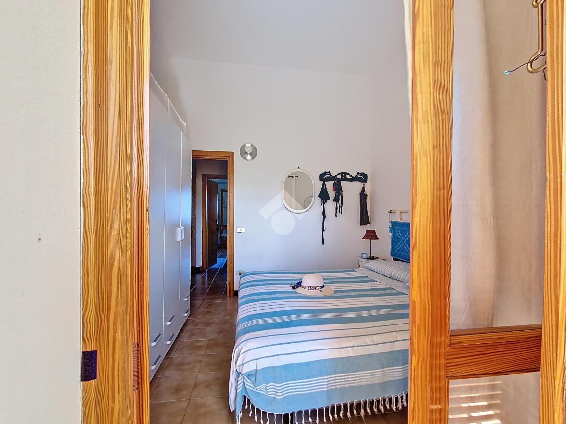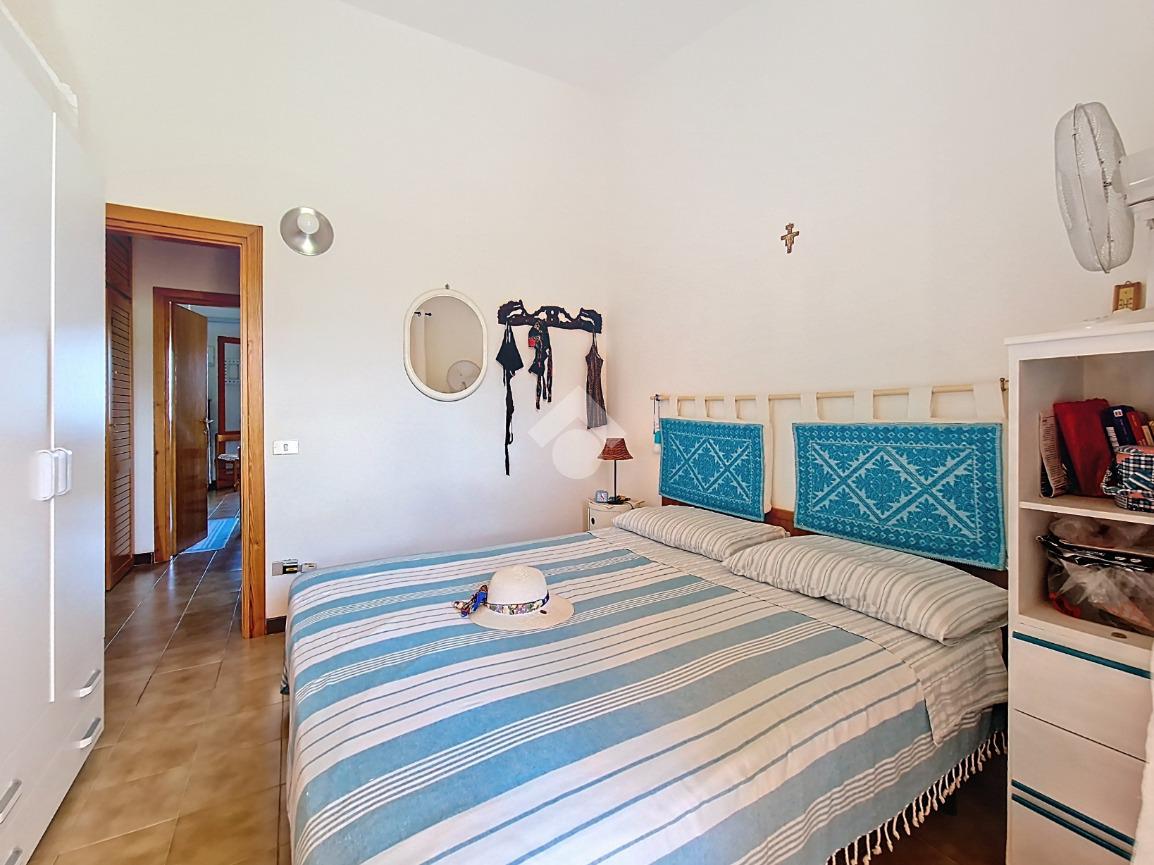 Dal disimpegno si accede al bagno cieco e alla camera matrimoniale che affaccia su un ulteriore spazio esterno perfetto per stendere e per riporre utensili da spiaggia, dove è presente la bombola del gas.