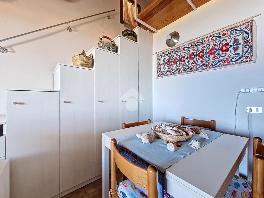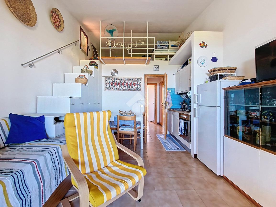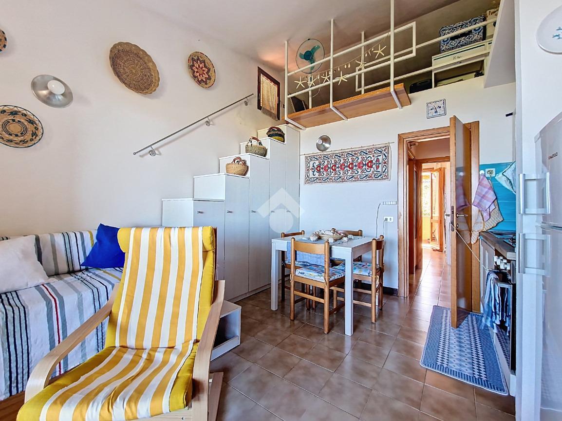 L’ingresso si apre su un luminoso soggiorno con angolo cottura, impreziosito da un soppalco dove è stato ricavato un comodo letto matrimoniale, ideale per ospiti o come spazio aggiuntivo. Dal soggiorno si accede a un terrazzo vivibile con una splendida vista mare, perfetto per pranzi all’aperto o momenti di relax.