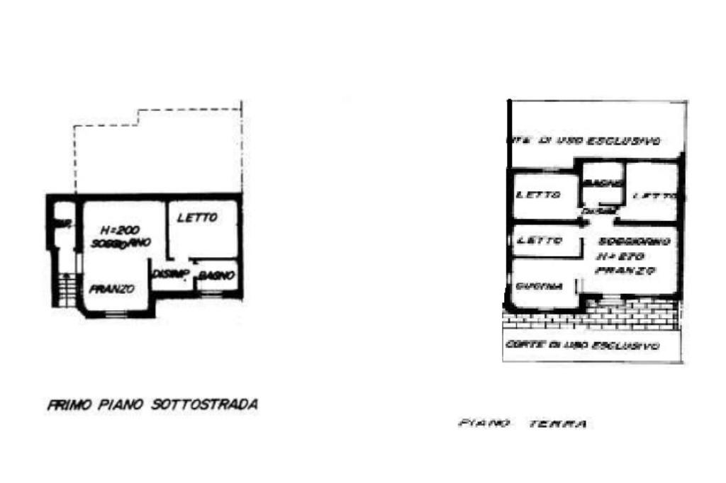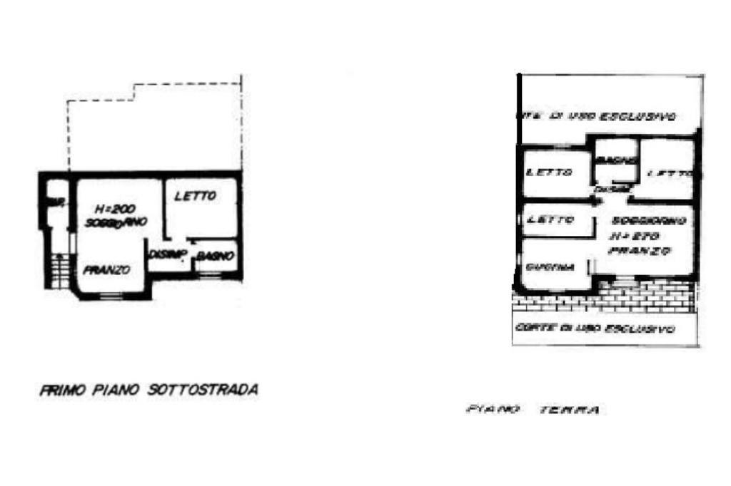 Dal cortile di proprietà accediamo al seminterrato composto da soggiorno con angolo cottura, camera matrimoniale e bagno.