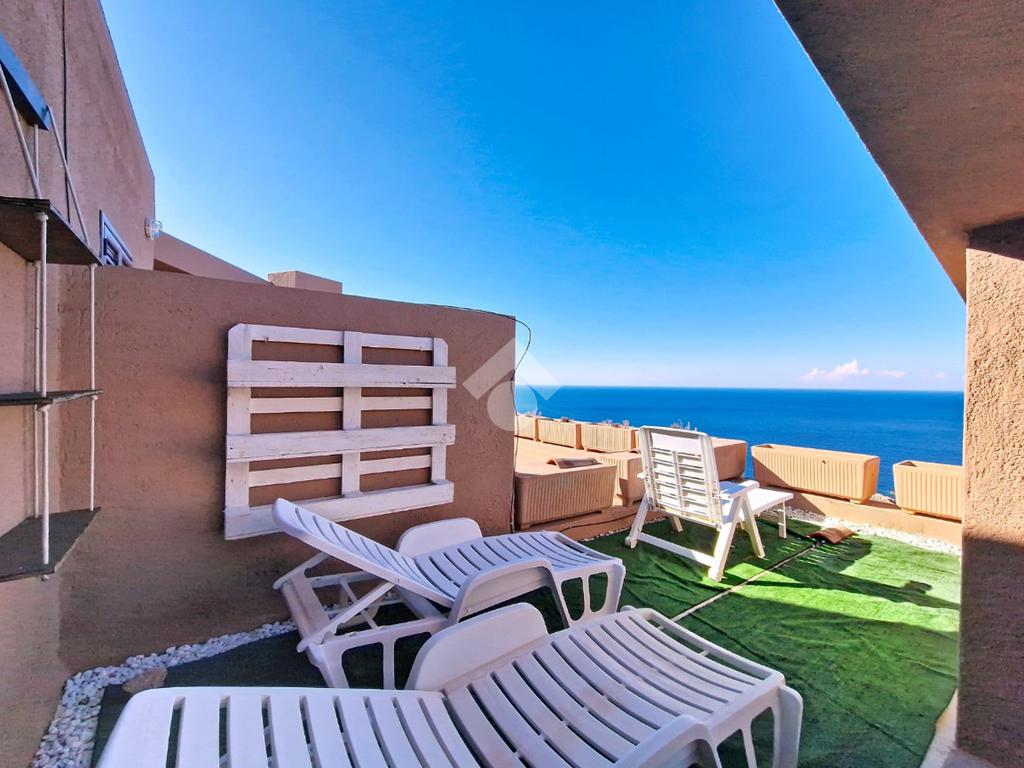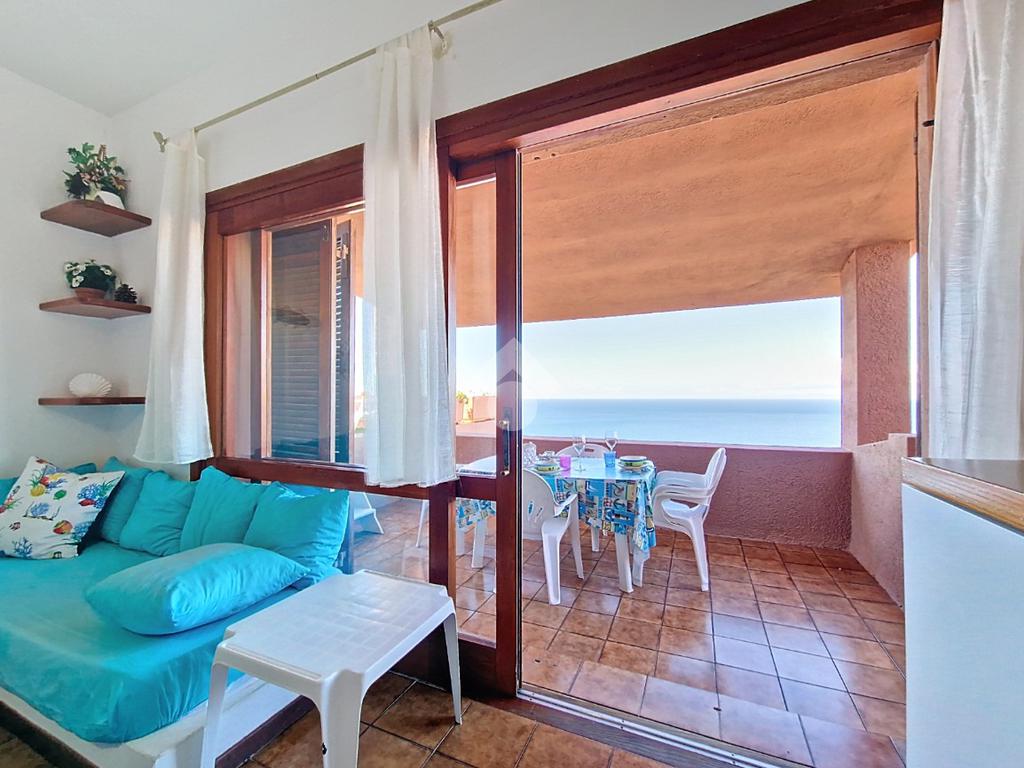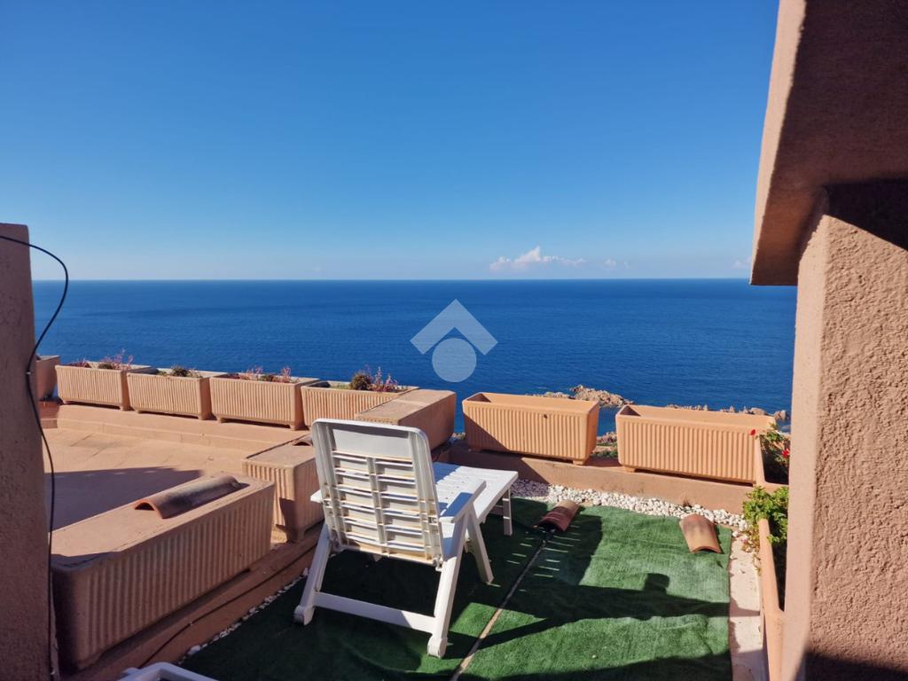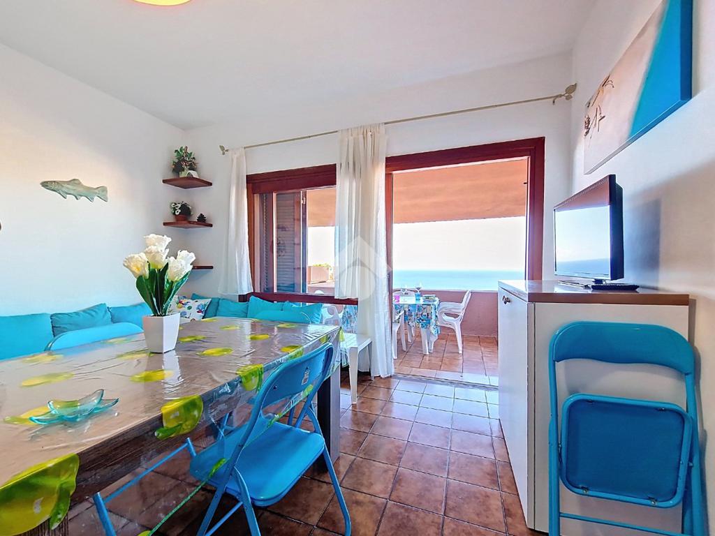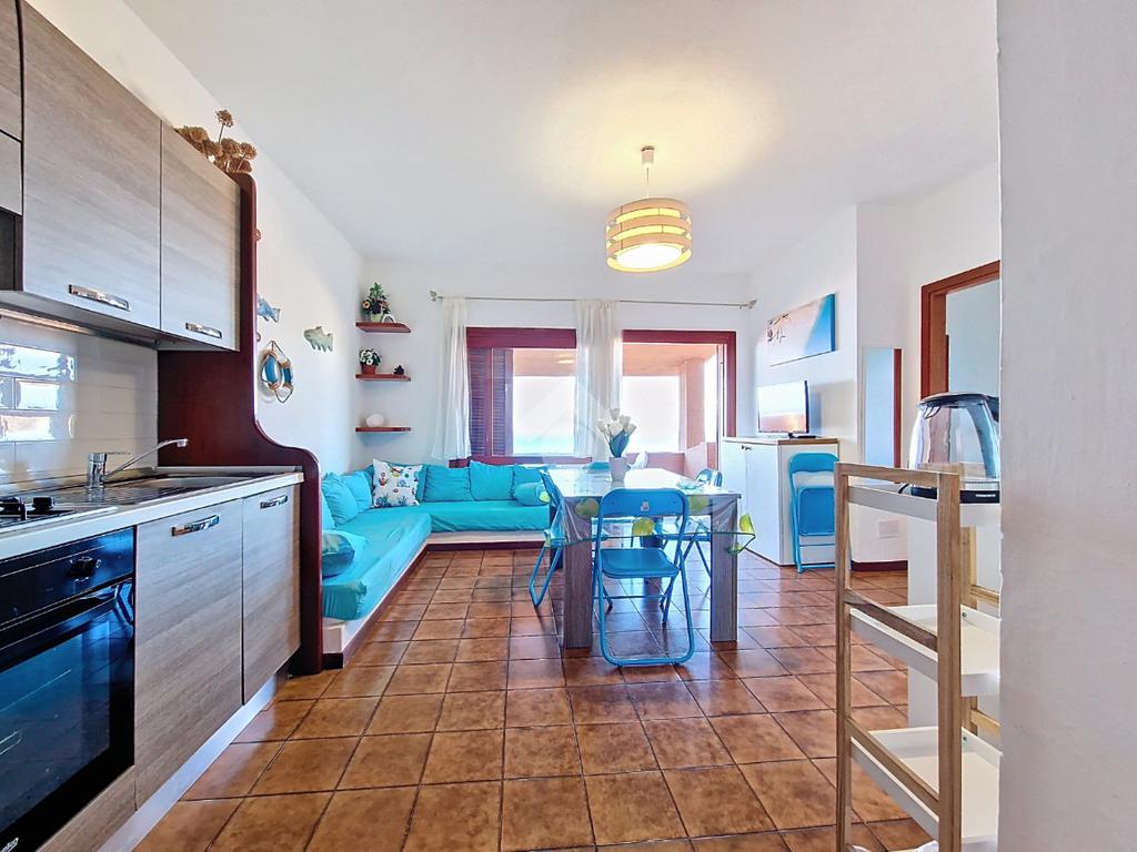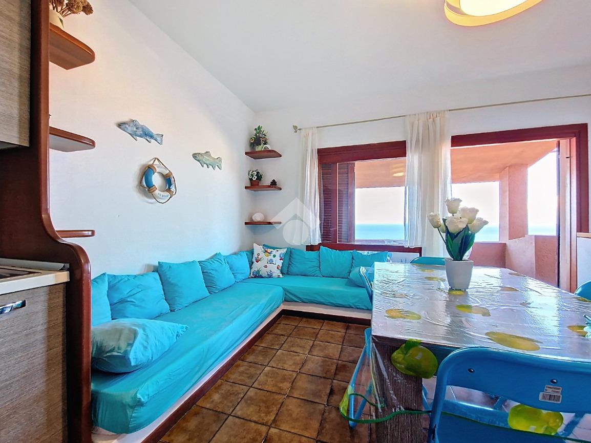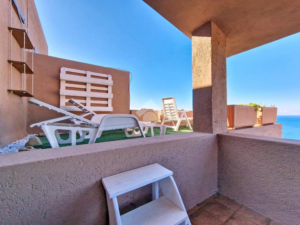 Attraverso qualche gradino accediamo all'immobile oggetto di vendita, si viene accolti da un'ampia zona giorno con angolo cottura molto luminosa, data la presenza di un'ampia porta finestra che porta a un unico spazio vista mare diviso tra convivialità e relax. Il terrazzo ospita tavolo e sedute per colazioni al sole e cene al chiaro di luna. Accanto, il solarium tra luce dorata e brezza leggera, dove si può godere di un calice al tramonto. Questo spazio all'aperto è perfetto per rilassarsi nelle sere d'estate, ammirando un paesaggio romantico dove è possibile godere di momenti unici con il proprio partner o con gli amici, e notare nelle notti d'estate il chiaro di luna illuminare il mare.