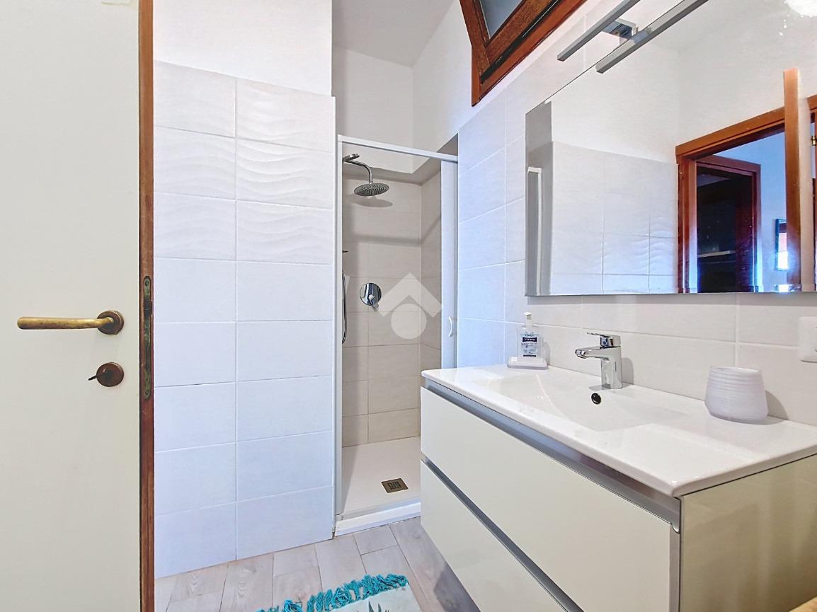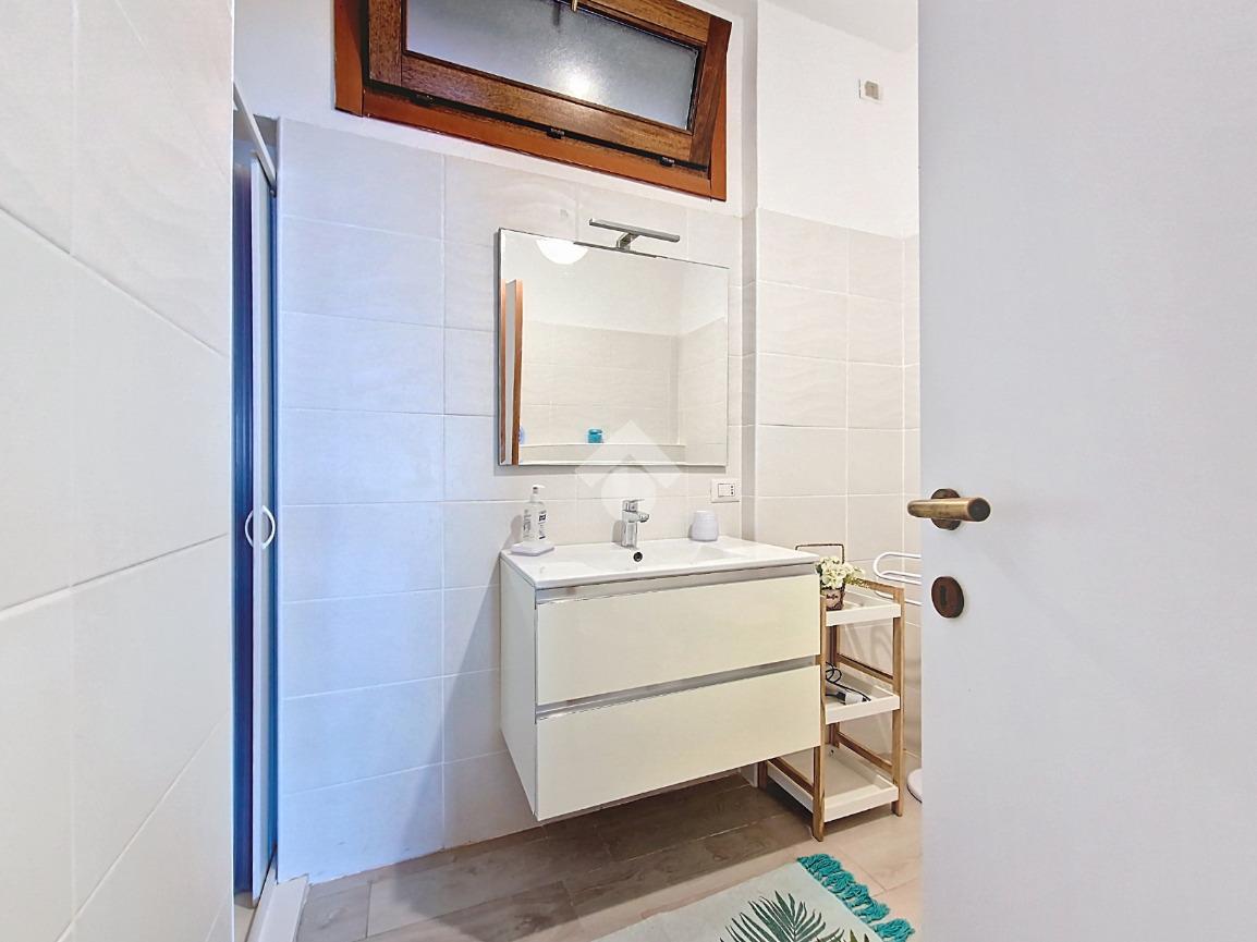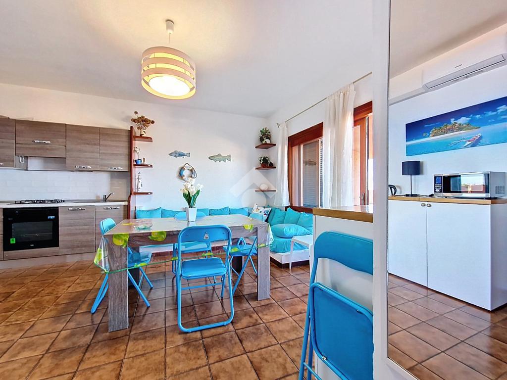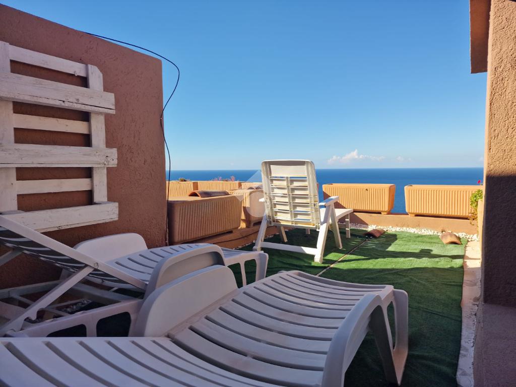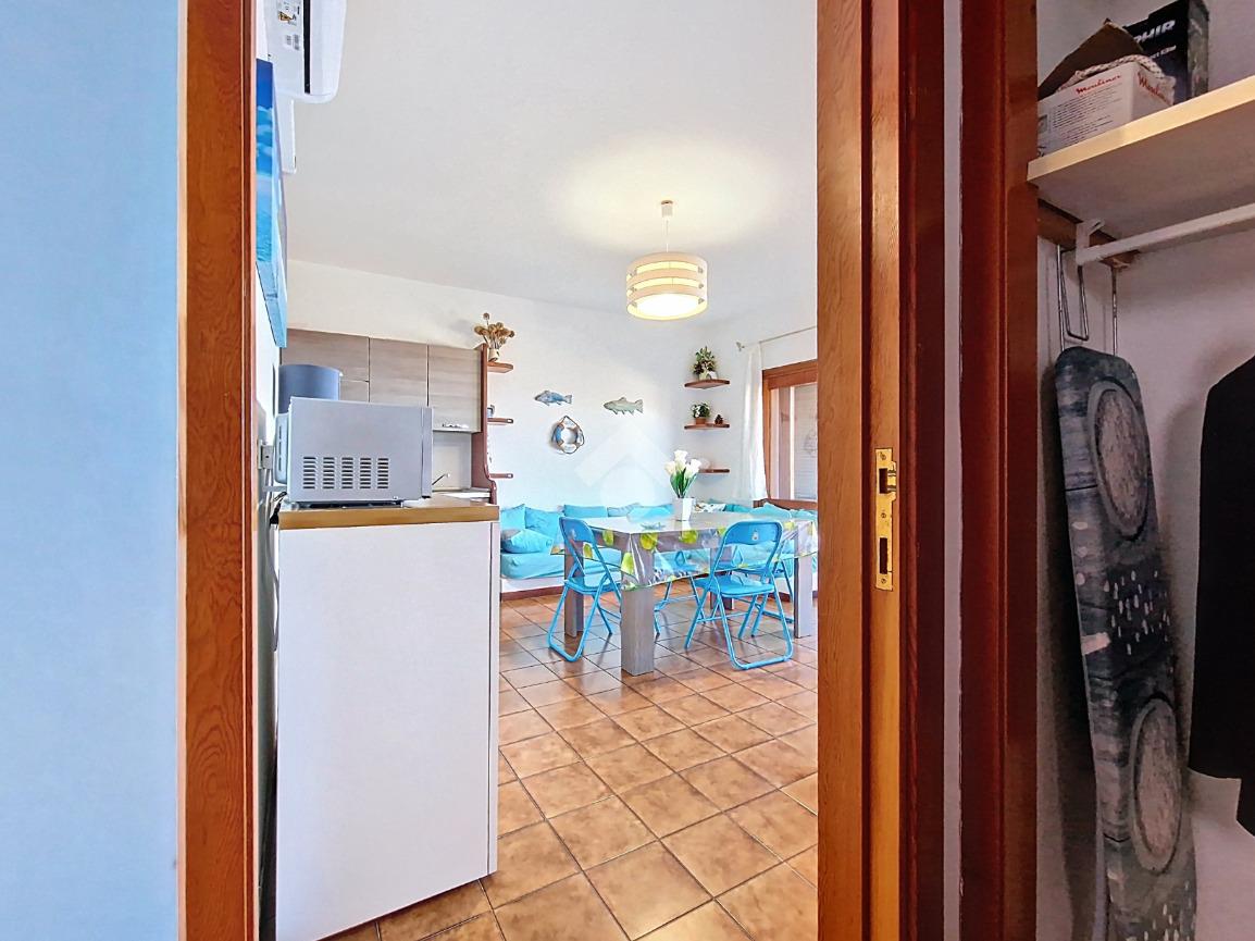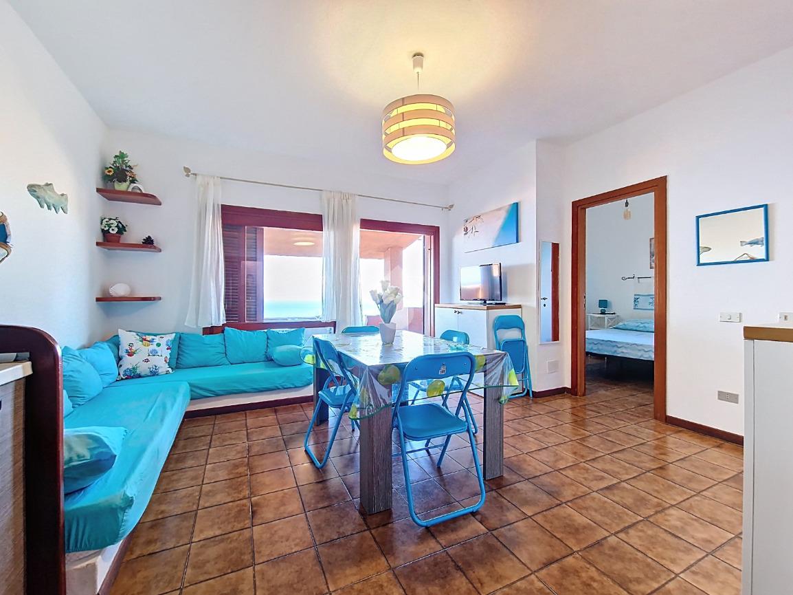 Attraverso qualche gradino accediamo all'immobile oggetto di vendita, si viene accolti da un'ampia zona giorno con angolo cottura molto luminosa, data la presenza di un'ampia porta finestra che porta a un unico spazio vista mare diviso tra convivialità e relax. Il terrazzo ospita tavolo e sedute per colazioni al sole e cene al chiaro di luna. Accanto, il solarium tra luce dorata e brezza leggera, dove si può godere di un calice al tramonto. Questo spazio all'aperto è perfetto per rilassarsi nelle sere d'estate, ammirando un paesaggio romantico dove è possibile godere di momenti unici con il proprio partner o con gli amici, e notare nelle notti d'estate il chiaro di luna illuminare il mare.