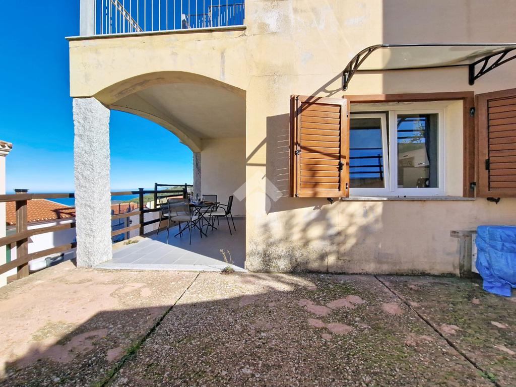 All’esterno, una grande veranda coperta si apre su un ampio spazio esterno privato, perfetto per trascorrere momenti di relax e convivialità all’aperto, godendo di un piacevole scorcio di vista mare.