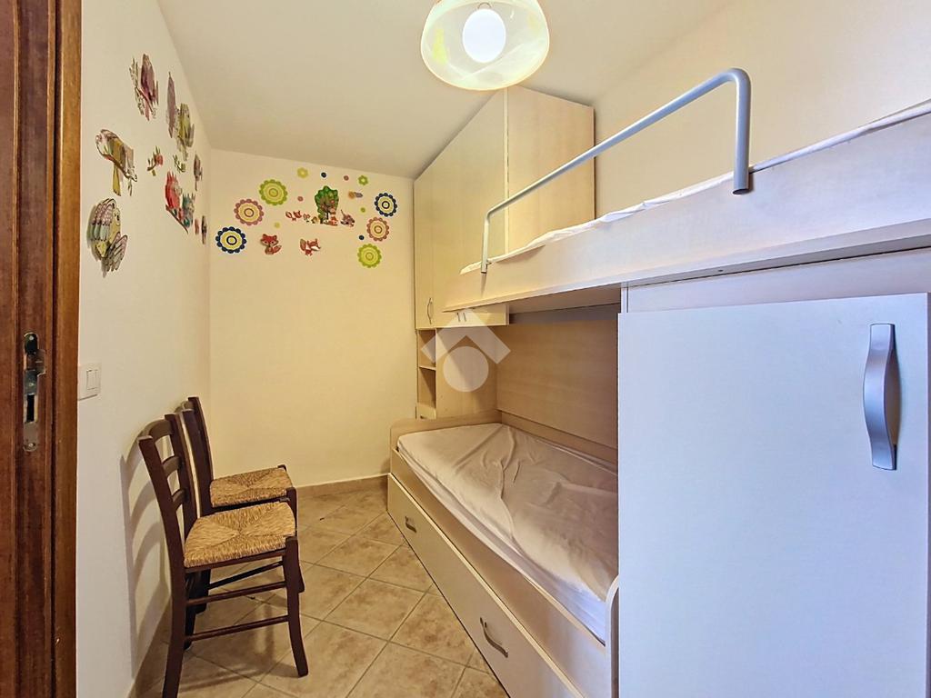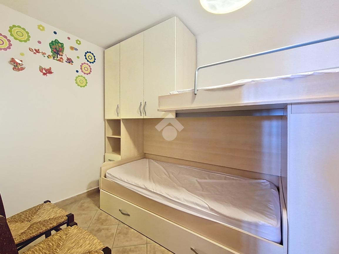 Dal disimpegno si accede alla zona notte, composta da una camera attualmente arredata con pratico letto a castello, soluzione intelligente che ottimizza gli spazi, e da un’ulteriore camera matrimoniale, ampia e confortevole.