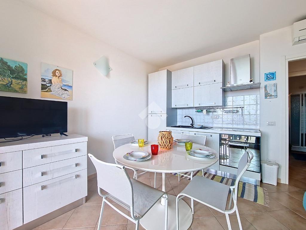 TRINITA' D'AGULTU E VIGNOLA - LOC. LA FRISAIA, in zona riservata. Il residence La Frisaia è perfetto per chi cerca una soluzione immersa nella natura e lontana dal caos ma allo stesso tempo a soli 800 mt dal centro storico del paese. Il centro storico di Trinità è molto suggestivo, con i suoi vicoletti in pietra e le case più antiche del paese che risalgono alla seconda metà dell 800. La spiaggia più vicina, quella della Marinedda è sicuramente tra le più belle del nord Sardegna con le sue acque cristalline e la meravigliosa vegetazione che la circonda. Quest'ultima dista circa 7 km dall'appartamento in questione, raggiungibile in pochi minuti d'auto e presenta diversi stabilimenti balneari e attrazioni per grandi e piccini. L'appartamento in questione, ultimato nel 2011, è un piano terra di circa 40 mq con vista panoramica. Accediamo all'immobile mediante l'ampio terrazzo di proprietà esclusiva con una meravigliosa vista sul spazio all'aperto è ideale per rilassarsi nelle calde sere d'estate sorseggiando un buon vino locale o leggendone un bel libro. Da quest'ultimo veniamo accolti in un'ampia e luminosa zona giorno con angolo cottura, arredata con gusto, con colori chiari. Tramite disimpegno accediamo alla zona notte composta da una camera da letto matrimoniale dalla quale accediamo ad un secondo spazio esterno, utile per riporre gli utensili del mare o per creare un la soluzione il bagno finestrato con doccia. Altro punto a favore dell'appartamento la presenza della grande piscina condominiale, ideale per chi ha bambini piccoli e per le giornate ventose in cui non è possibile recarsi in la piscina è sempre più richiesta nell'ottica dell'investimento da mettere a reddito. I posti auto condominiali liberi si trovano proprio di fronte all'appartamento.