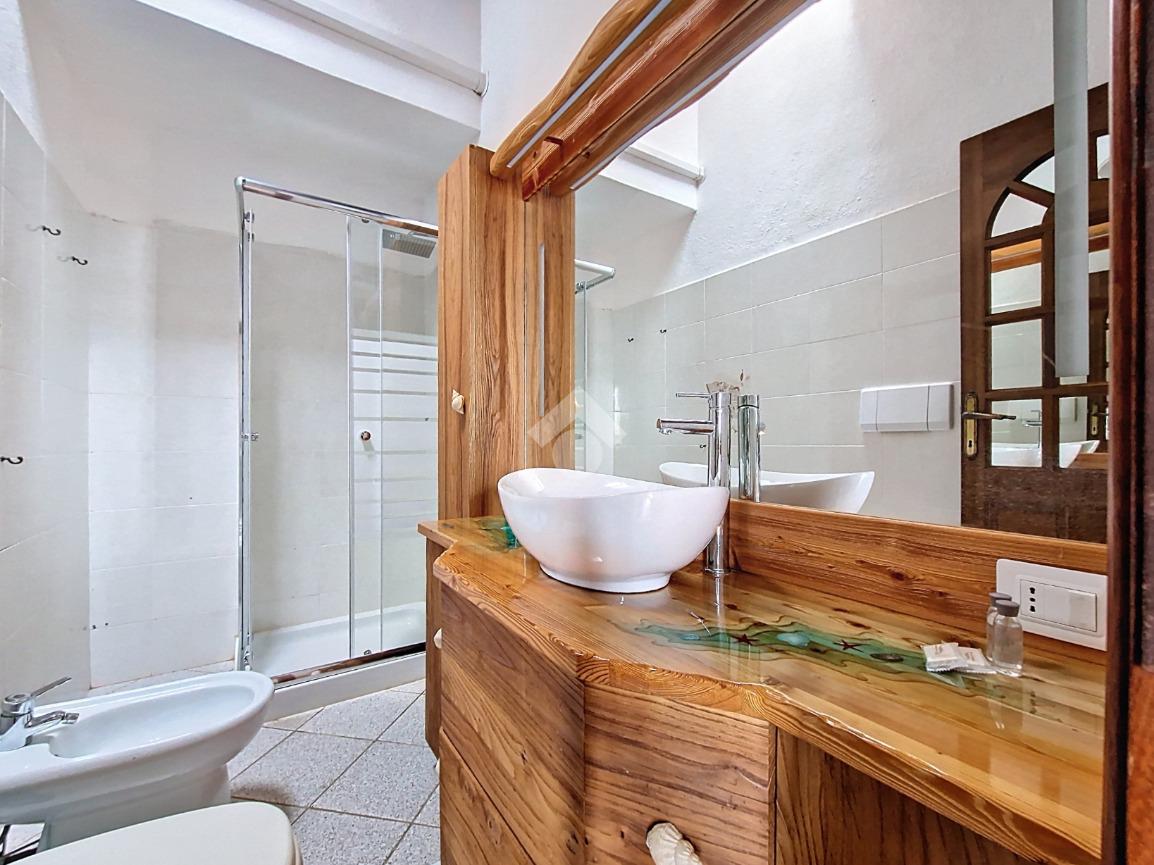 Dal terrazzo accediamo alla zona giorno vivibile con angolo cottura, i mobili sono interamente realizzati da un artigiano del legno e la cura nel dettaglio e la manutenzione da parte dei proprietari rende questa soluzione pronta all’uso.